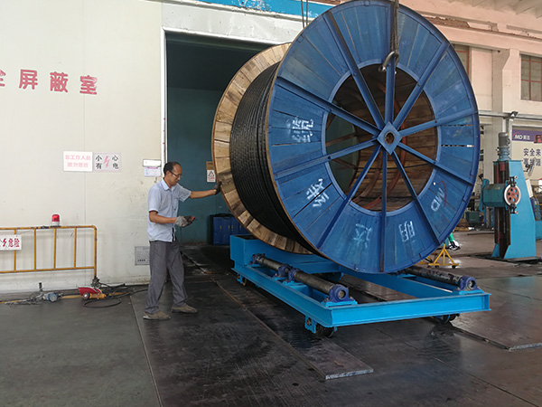 局放屏蔽室是电缆成品局部放电测试专用封闭式场所。过去将电缆运来测试,都是靠人工将整盘笨重的电缆推进推出,费时费力,效率不高,并且存在一定的安全风险。今年8月初,集团生产中心副总监兼设备部长张仲奇提出并负责实施了一个“用有轨电动平板车替代人工搬运”的技改方案。