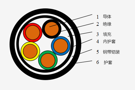 • 0.6/1kV 3+2芯交联聚乙烯绝缘钢带铠装聚氯乙烯护套耐火电力电缆(NH-YJV22, NH-YJLV22)