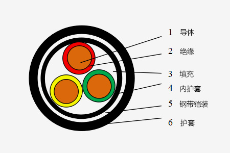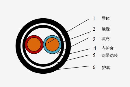 • 0.6/1 kV 两芯交联聚乙烯绝缘钢带铠装聚氯乙烯护套耐火电力电缆(NH-YJV22、NH-YJLV22)