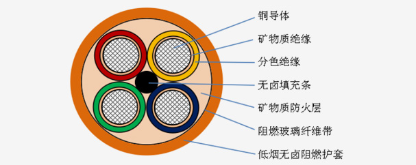 (3)绿色环保:电缆结构材质均选用无机矿物材料,电缆在燃烧的火焰中,不释放烟雾,不释放有毒气体;废弃后的电缆也可全部回收再利用,不会污染自然环境。